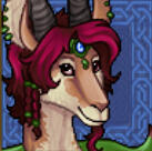 IN-GAME DESCRIPTION: Before you is a towering Cerdiere that harbors a woodsy aroma, a deep melodic voice, and curly auburn hair from which dark swirling horns protrude. Vines blooming with blue flowers wrap across his limbs and torso. Around his neck dangles a set of pipes, emblazoned with a glowing turquoise gem. On his shoulder sits a golden nightingale with a curious gaze. He is recognizable to other Cerdiere, as he was born into the Hanasi line; thus fating him to be the reluctant leader of his dwindling tribe known as the Se’irim. Other Cerdiere see this community as a relatively peaceful type, who acknowledge the harshness of survival but place great value in lightening this burden with entertainment - often in the form of music, dance, and wine. However, due to encroachment on their original land, the Se’irim have begun migrating to Kasuria under his leadership.